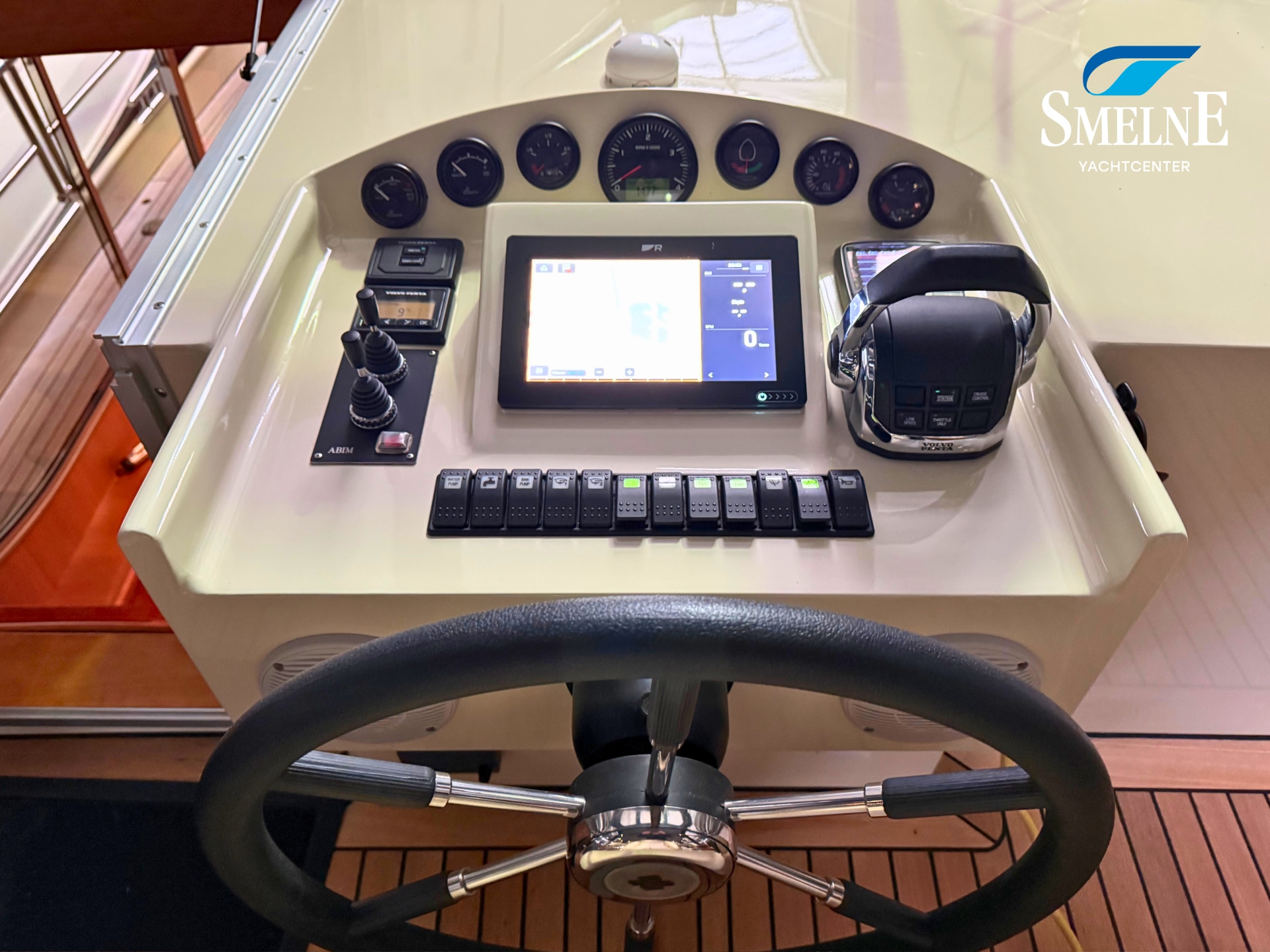Ook technisch is deze ABIM Classic 108 Exclusive volledig en verzorgd uitgevoerd. De elektronische motorbediening met Volvo Penta EVC biedt overzicht van motorgegevens, brandstofverbruik en overige systeeminformatie. Verder beschikt het jacht naast alle eerdere benoemde zaken in de specificatielijst over een elektrische maststrijkinstallatie, extra audiospeakers en 230V aansluiting bij de buitenstuurstand, Victron BMV-700 accubewaking, dimmer op de salonverlichting, Marlan werkbladen, PU-foam isolatie, RVS fenderkorven voor acht fenders, en een romp die in 2025 professioneel is gespoten, wat het verzorgde geheel onderstreept.