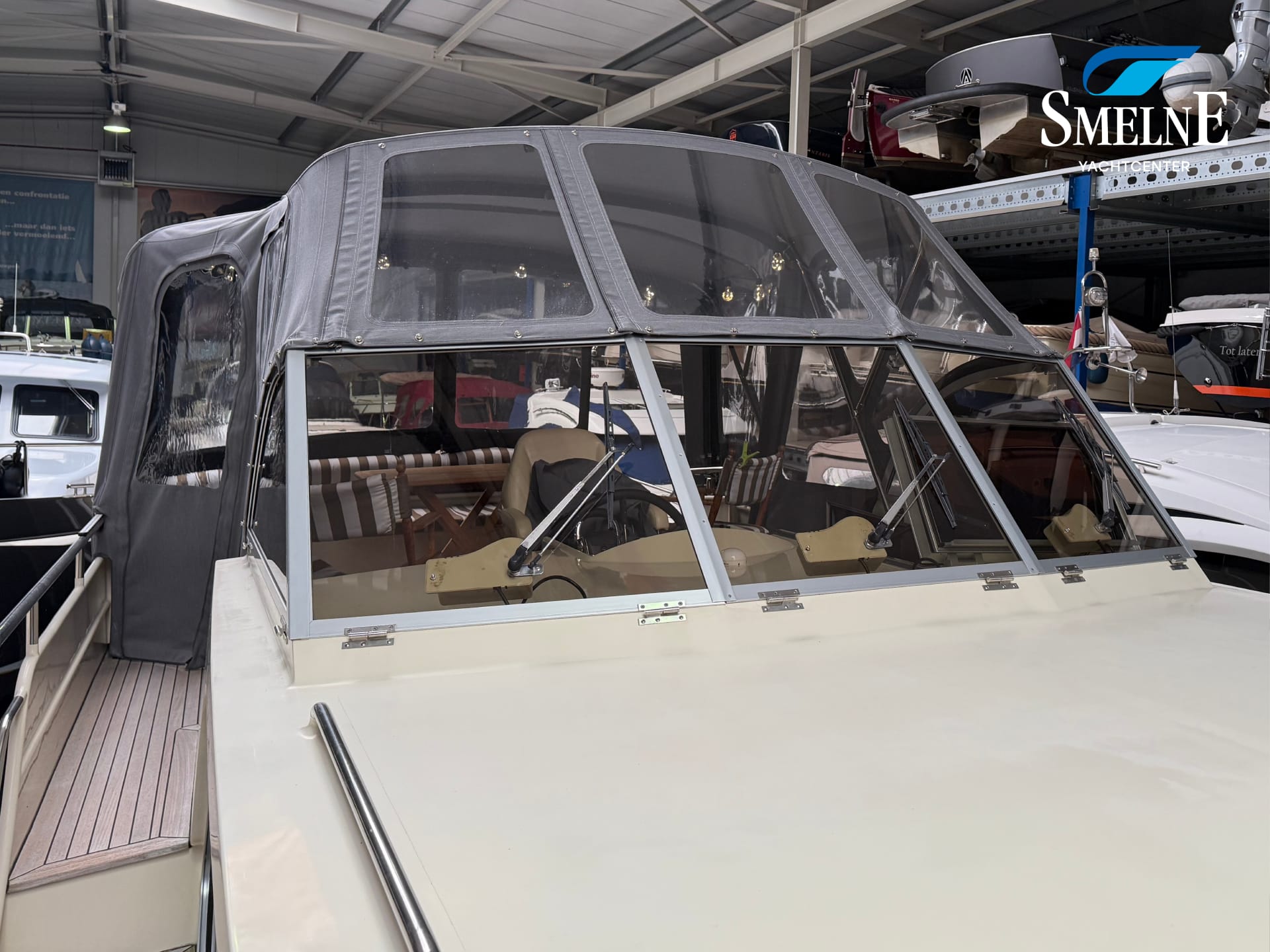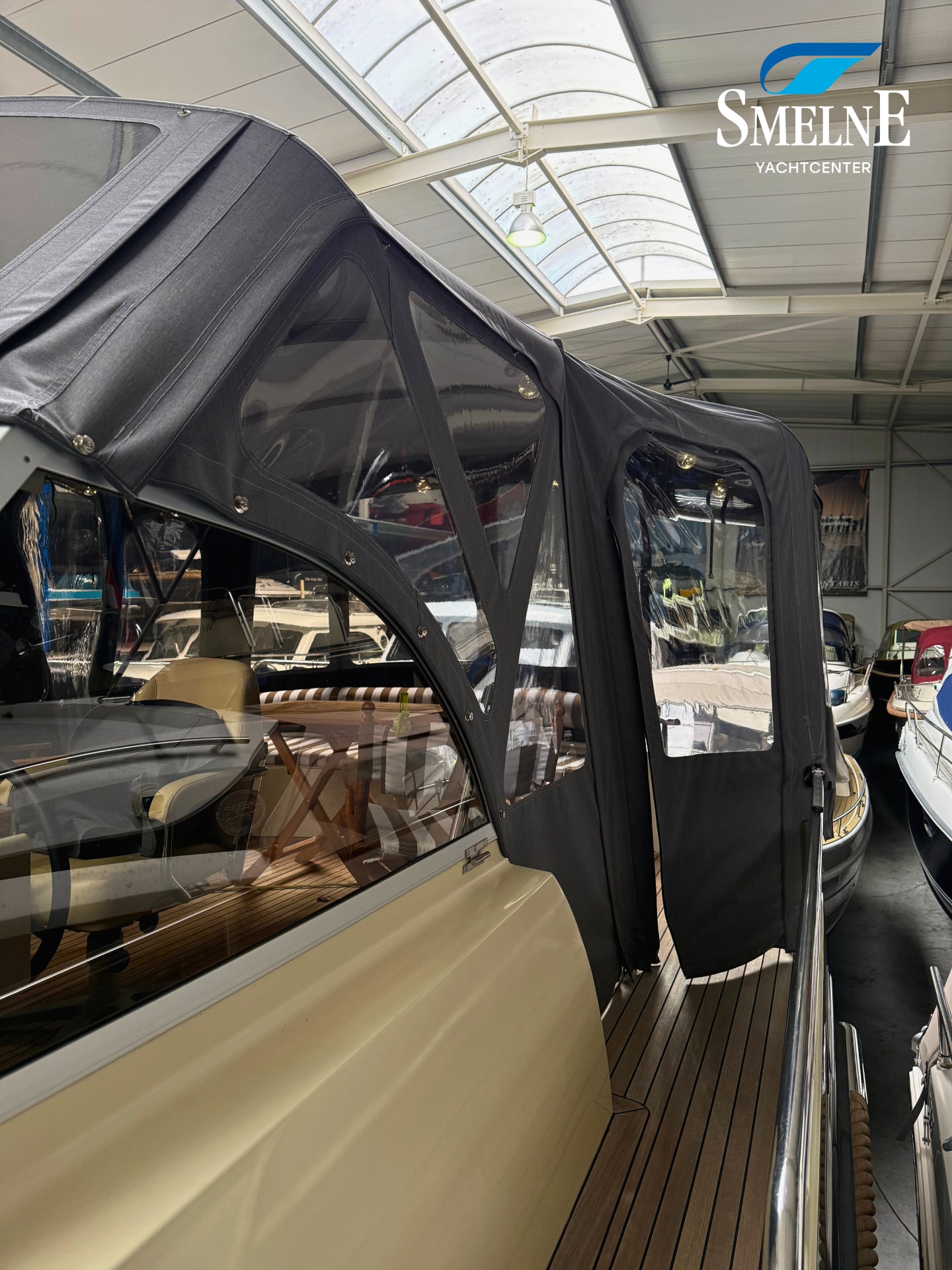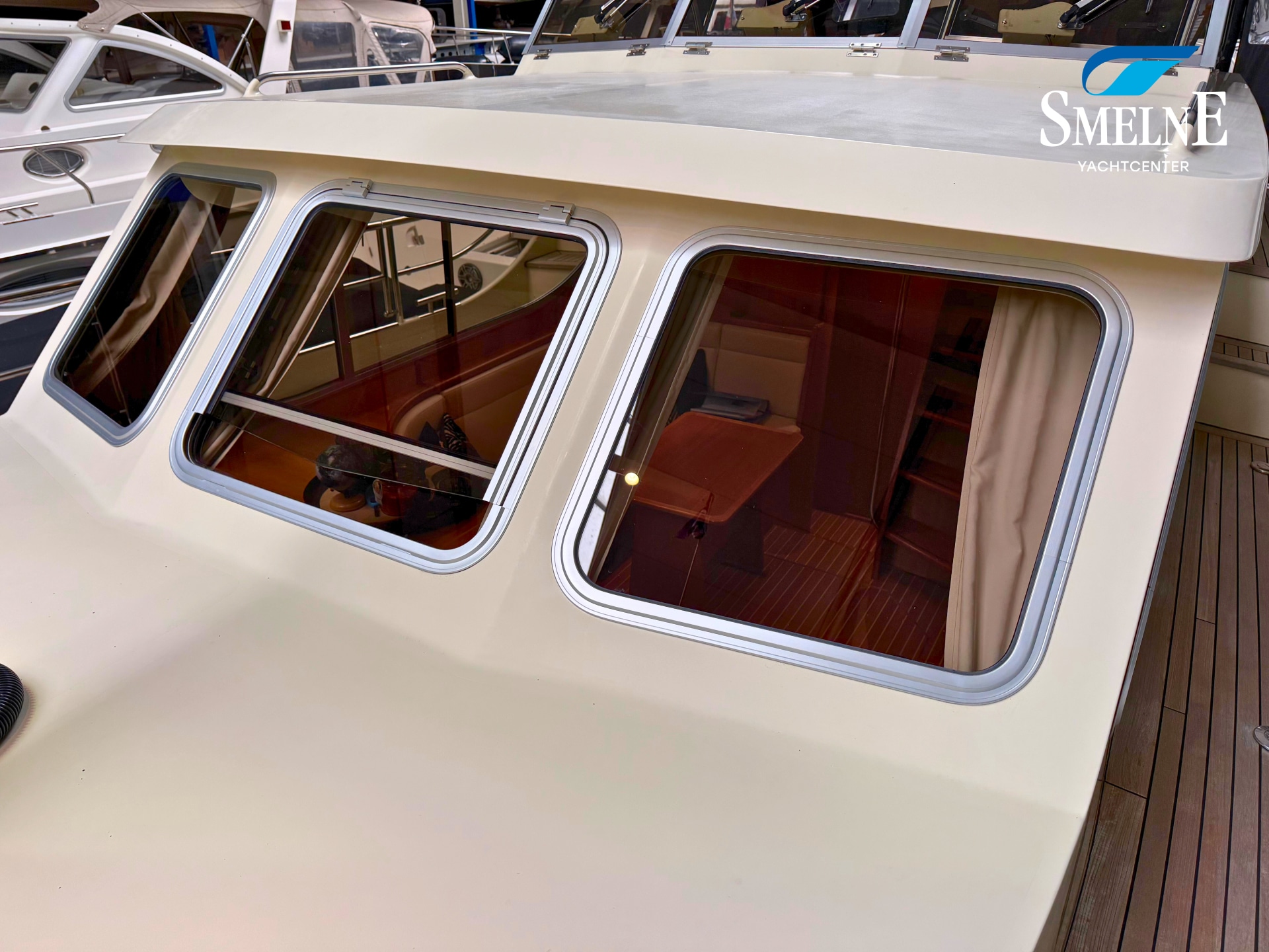 Het achterdek vormt een prettige leefruimte, waar u al snel de dag begint en vaak ook afsluit. De midscheepse stuurstand biedt goed zicht rondom. De vaste dekbank nodigt uit om op zomeravonden nog even na te genieten van een mooie vaardag. Het verdiepte opbergvak houdt het dek netjes en overzichtelijk en is bij uitstek geschikt voor het opbergen van dekinventaris of vouwfietsen. Via de geïntegreerde draaitrap bereikt u moeiteloos het zwemplateau, dat bovendien sfeervol is verlicht. Met de in 2025 vernieuwde XL-cabriokap vormt het achterdek altijd een heerlijke extra ruimte om te zitten en te genieten, ongeacht het weer.