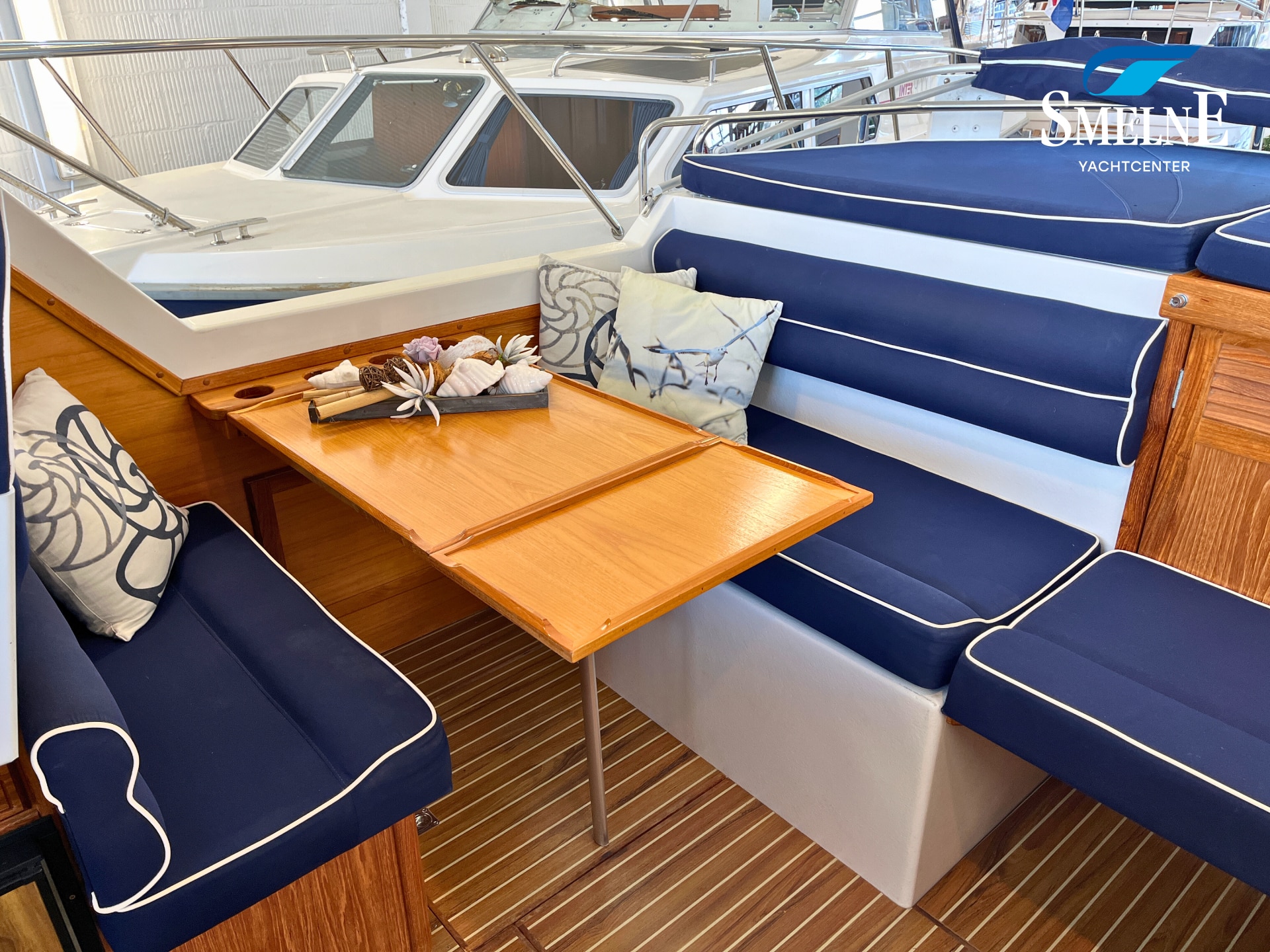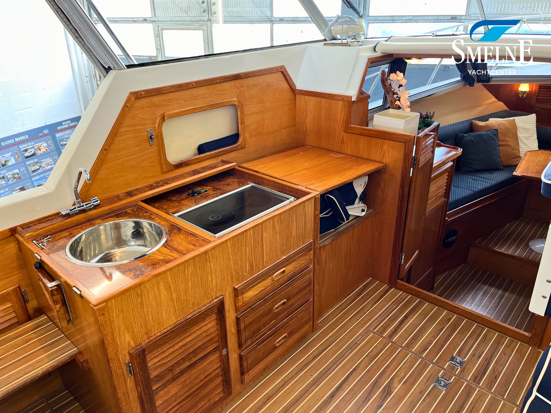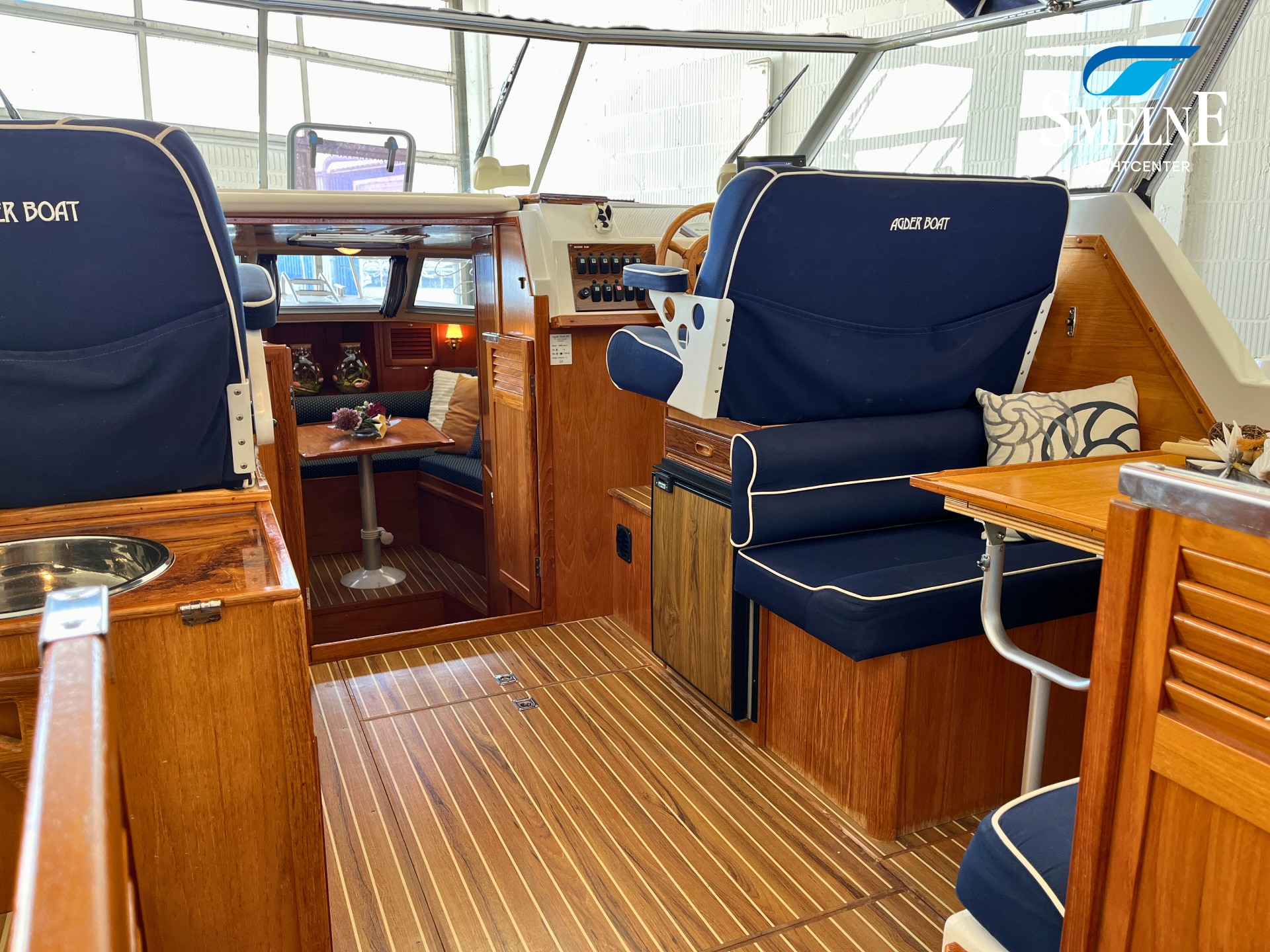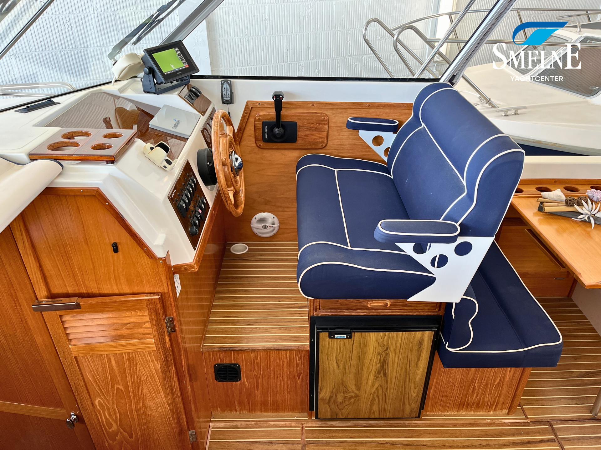 De open kuip is slim ingedeeld met een comfortabele zitgroep, een keuken aan bakboord en een overzichtelijke stuurstand aan stuurboord. De op de keuken geplaatste meevaarstoel kan eenvoudig worden omgeklapt, waardoor het werkblad volledig vrij is. Op het dak van de achterkajuit ligt een royaal zonnebed voor ontspannen momenten aan dek.