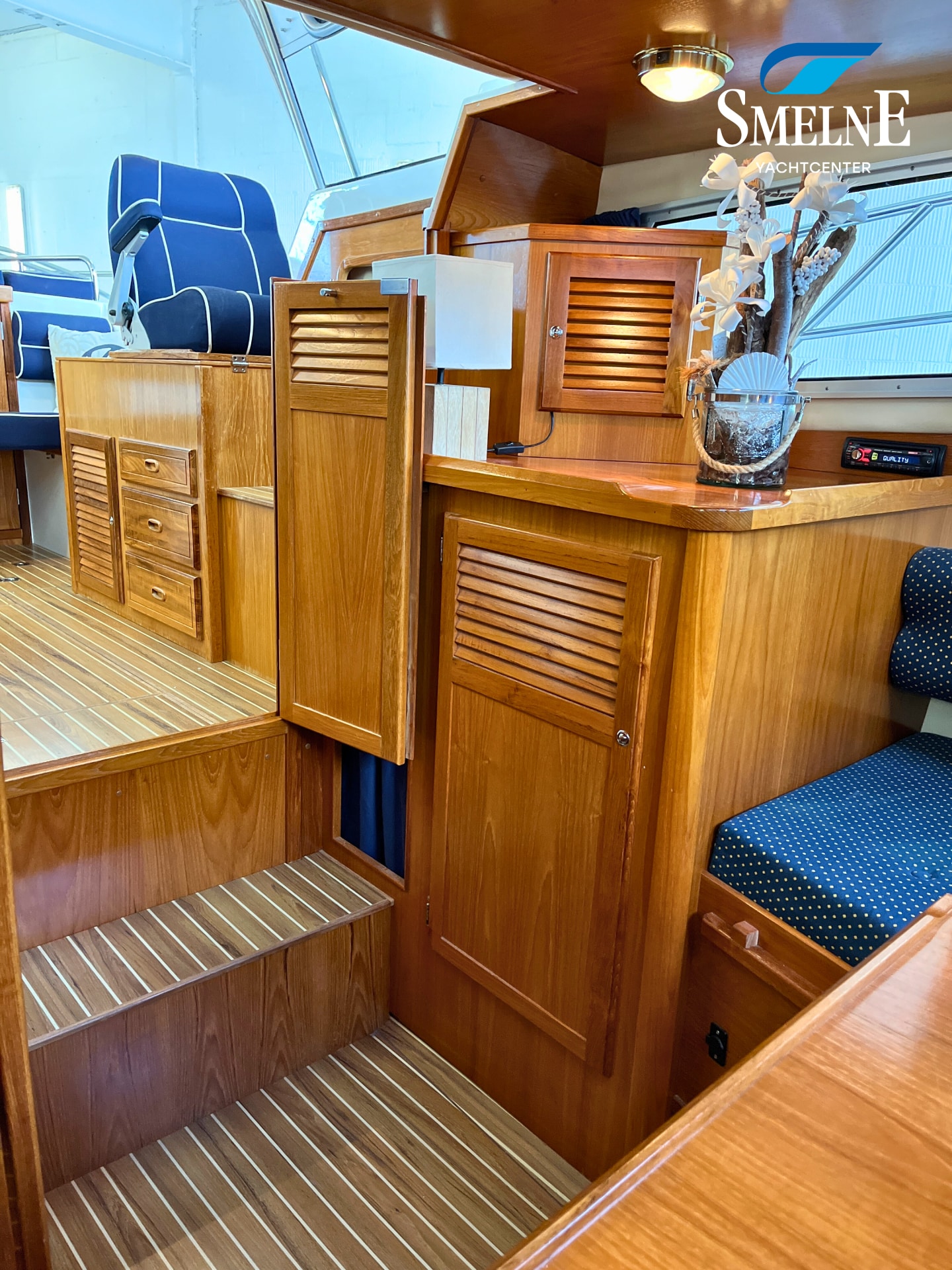 Deze Agder 840 is volledig uitgerust met; boegschroef, kaartplotter, elektrische ankerlier met afstandsbediening, zonnepaneel met laadregelaar, acculader, boiler, dekdouche, verwarming en Wallas dieselkooktoestel en daardoor volledig gasloos,. Elk systeem en elk element van het interieur en exterieur is zorgvuldig geselecteerd voor duurzaamheid en optimaal gebruiksgemak.