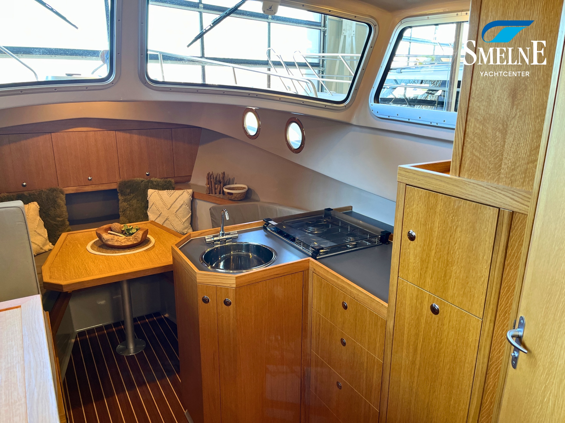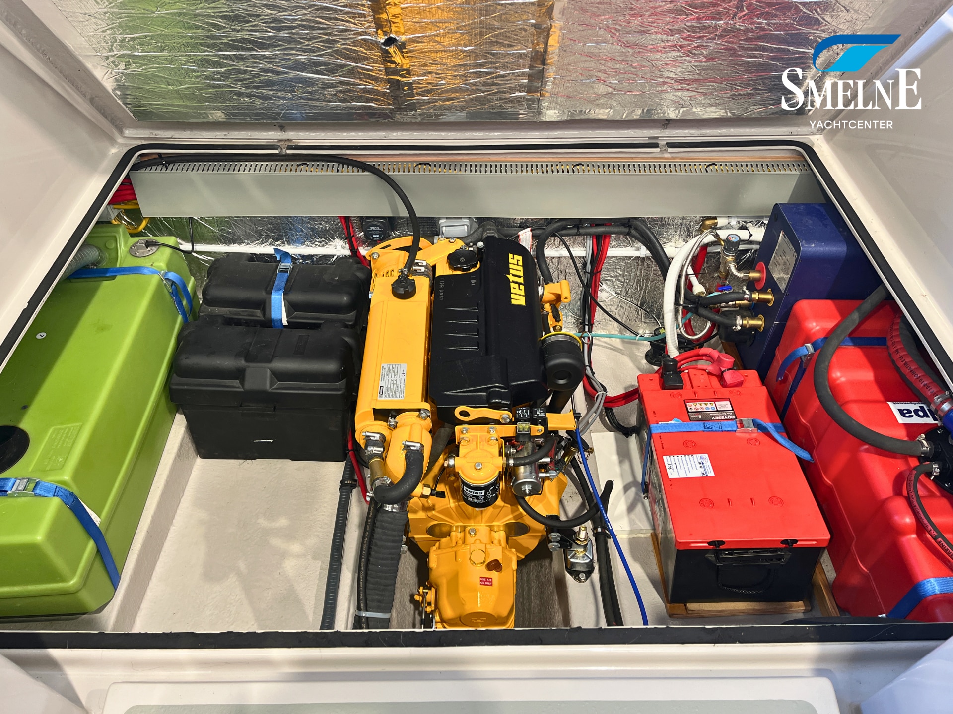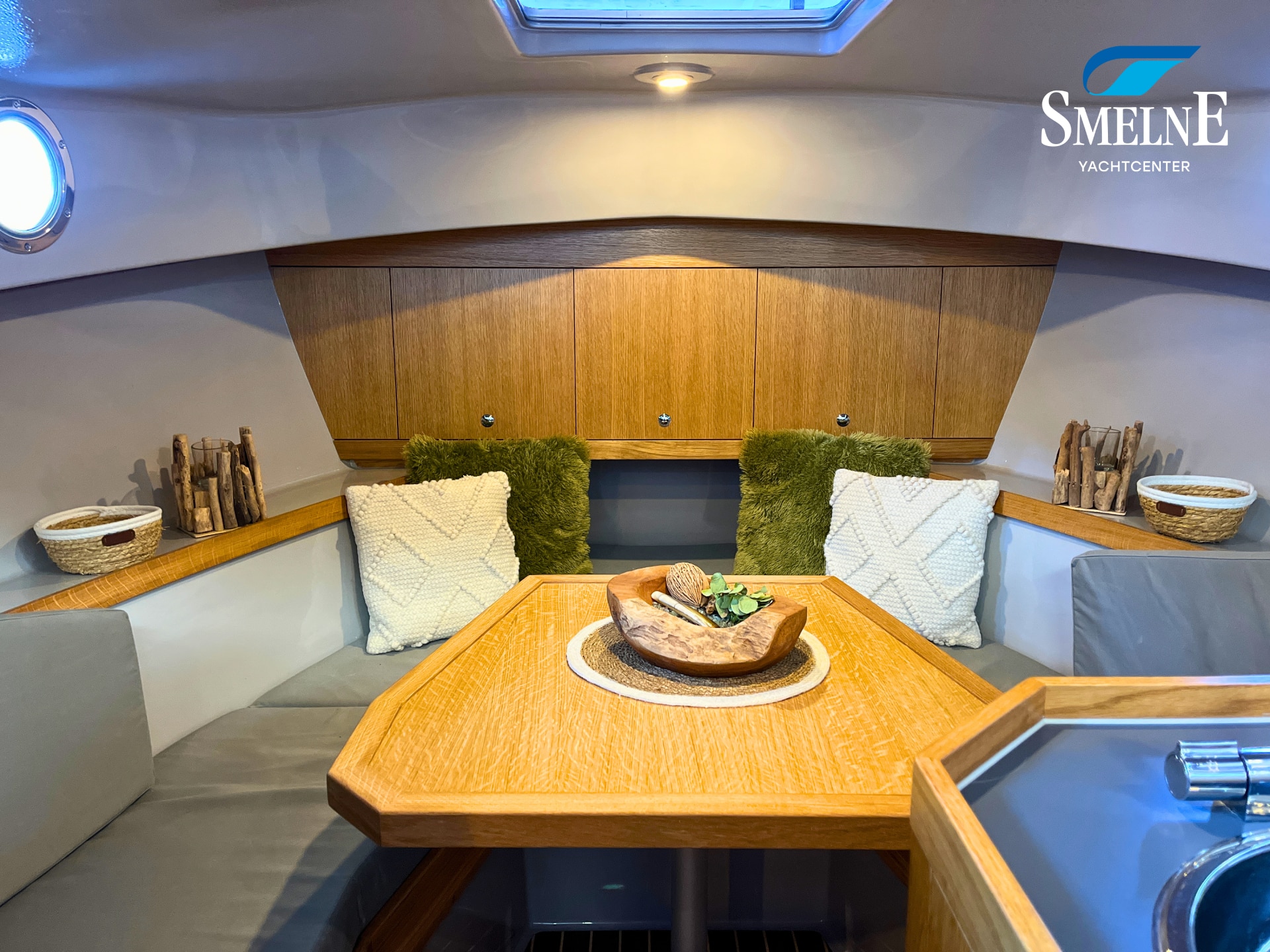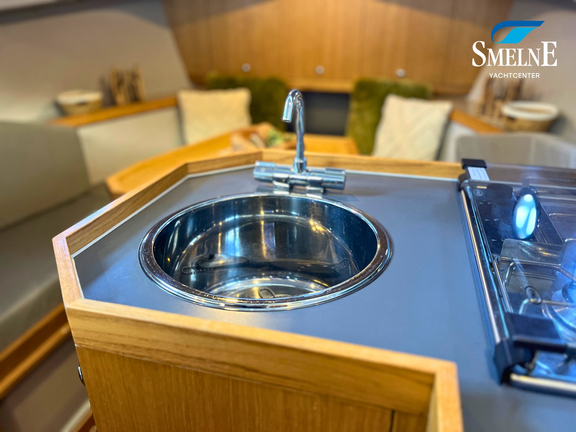 De ruime open kuip vormt het hart van het schip. Hier geniet u optimaal van alles wat de omgeving te bieden heeft. De U-vormige kuipbank, de praktische kuiptafel en de overzichtelijke stuurstand maken dit dé plek waar varen en ontspannen echt samenkomen. Binnen wordt u verrast door de ruimte en het licht. De kajuit biedt een prettige stahoogte en is doordacht ingedeeld met een keuken, dinette en een gezellige rondzit die eenvoudig om te bouwen is tot een ruime slaapplaats. De aanwezigheid van een sanitaire ruimte met elektrisch toilet maakt het comfort compleet.