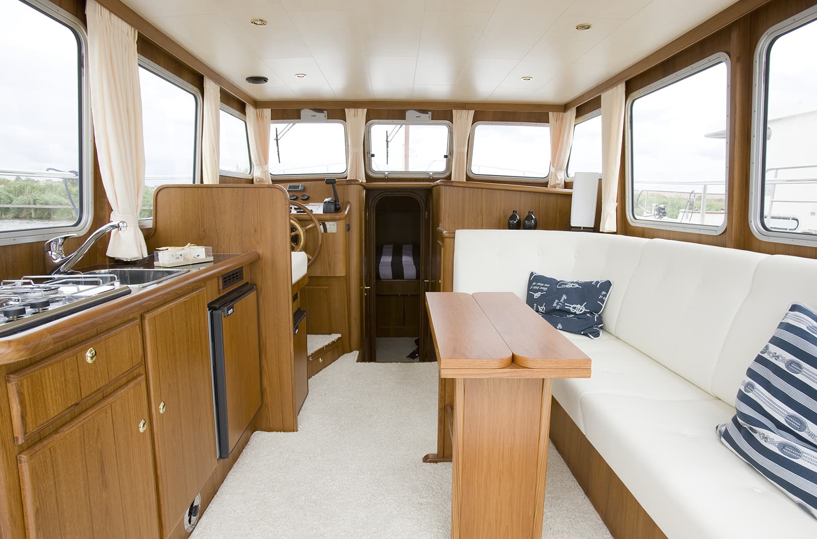 De Smelne Vlet 350 OC is een compact motorjacht van 10,70 meter, perfect voor zowel rustige binnenwateren als avontuurlijke kustwateren. Het klassieke ontwerp wordt gecombineerd met moderne afwerking, waardoor comfort en betrouwbaarheid hand in hand gaan. Dit hoogwaardige stalen jacht biedt een doordachte indeling, met een gezellige open kuip, een comfortabele zithoek, een goed uitgeruste keuken en ruime slaapruimte. U kunt kiezen uit diverse indelingen, zoals een keuken in de salon of het voorschip, een verlengd salondak of een modern elektrisch schuifdakluik. Het interieur kan volledig worden afgestemd op uw persoonlijke voorkeuren, zodat de Smelne Vlet 350 OC naadloos aansluit bij uw stijl. Dit motorjacht is de ideale keuze voor wie op zoek is naar een compact, maar compleet schip voor onvergetelijke momenten op het water.
