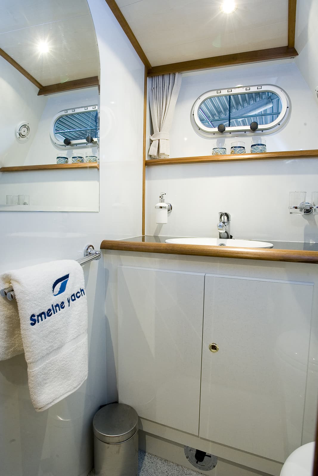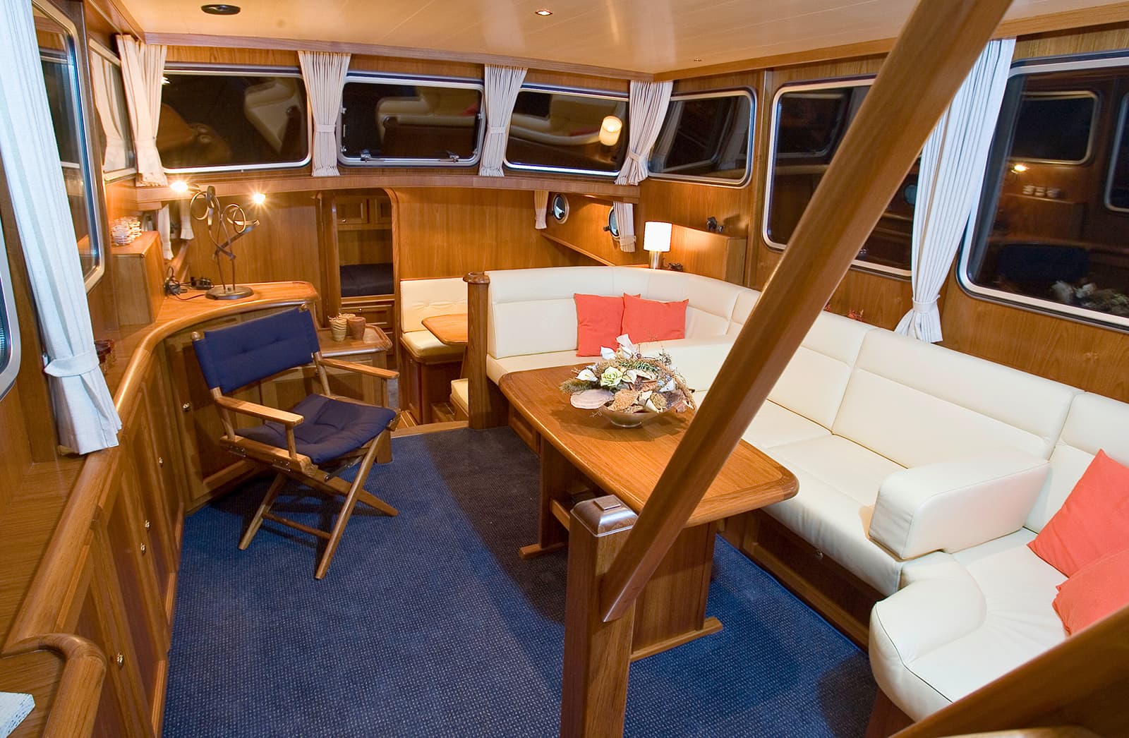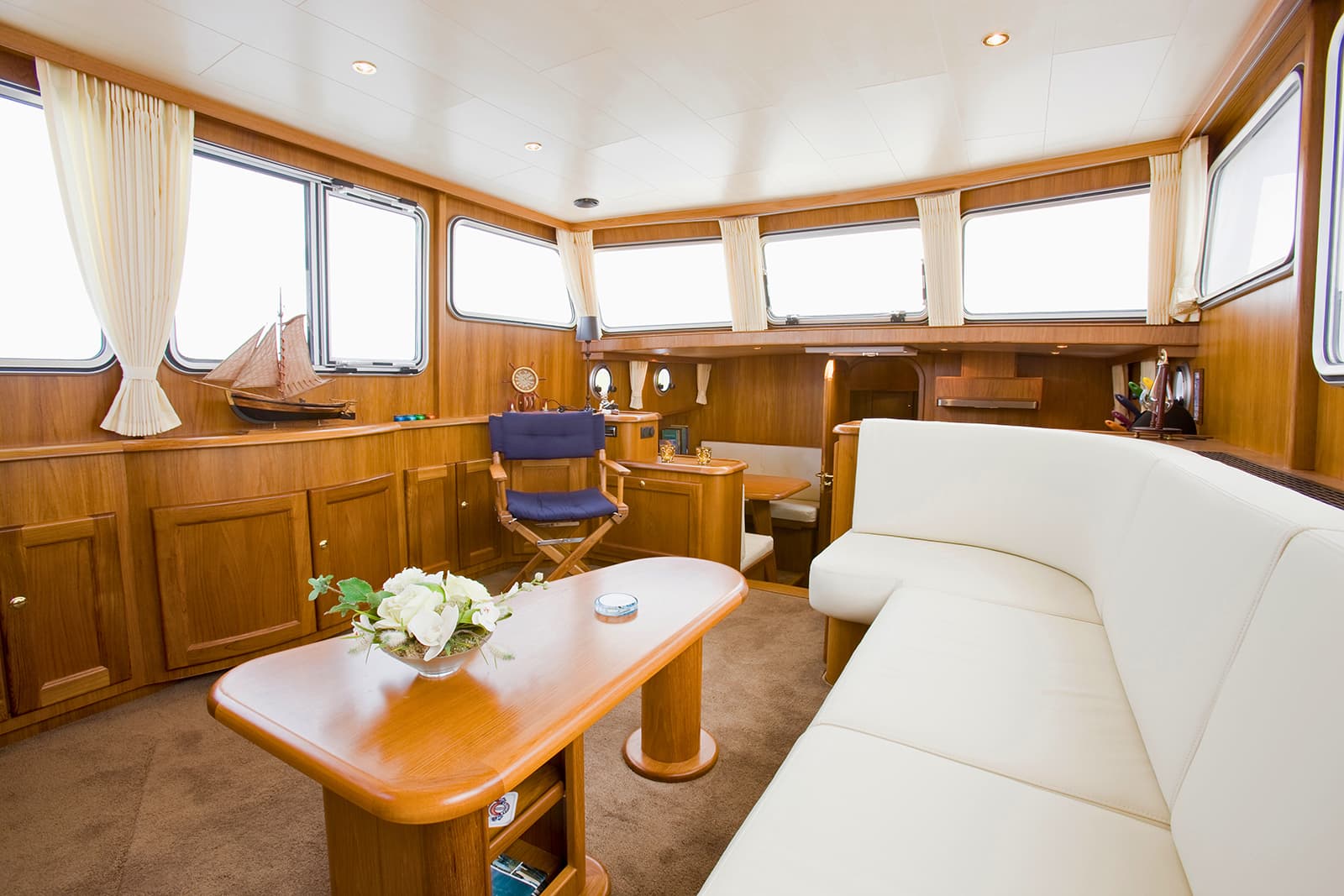 De brede gangboorden geven het gevoel dat u zich aan boord van een groter model dan de 430 AC bevindt. Het volledig overdekte achterdek biedt niet alleen extra verblijfsruimte, maar ook een panoramisch uitzicht dat elke bestemming een nieuwe dimensie geeft. Met afmetingen van 12,98 x 4,15 meter is er volop ruimte voor comfort en luxe, of u nu korte tochten maakt of langere reizen onderneemt. De Smelne Vlet 430 AC staat niet alleen garant voor stijl, maar ook voor geweldige zeewaardigheid. Door haar slimme ontwerp en unieke onderwaterschip voelt ze zich even thuis op rustige wateren als op uitdagender zee. Het interieur kan volledig op uw wensen en stijl worden afgestemd, zodat deze vlet naadloos aansluit bij uw persoonlijke voorkeuren en verwachtingen, ongeacht waar de reis u heen brengt.
