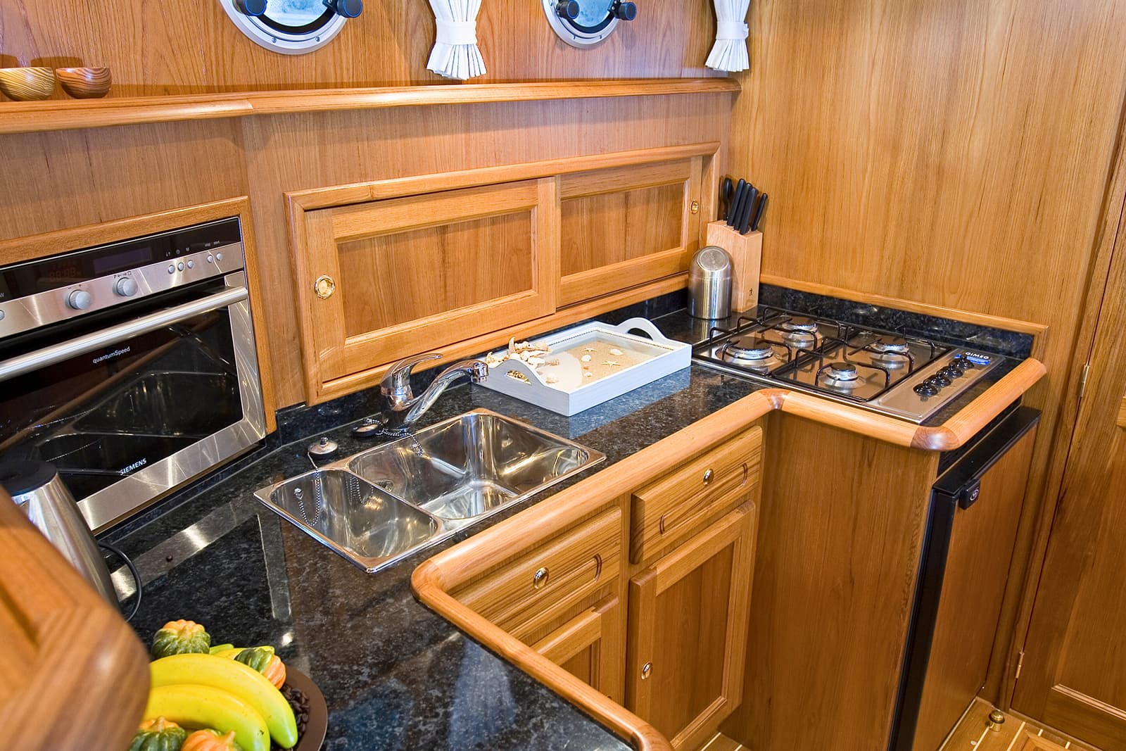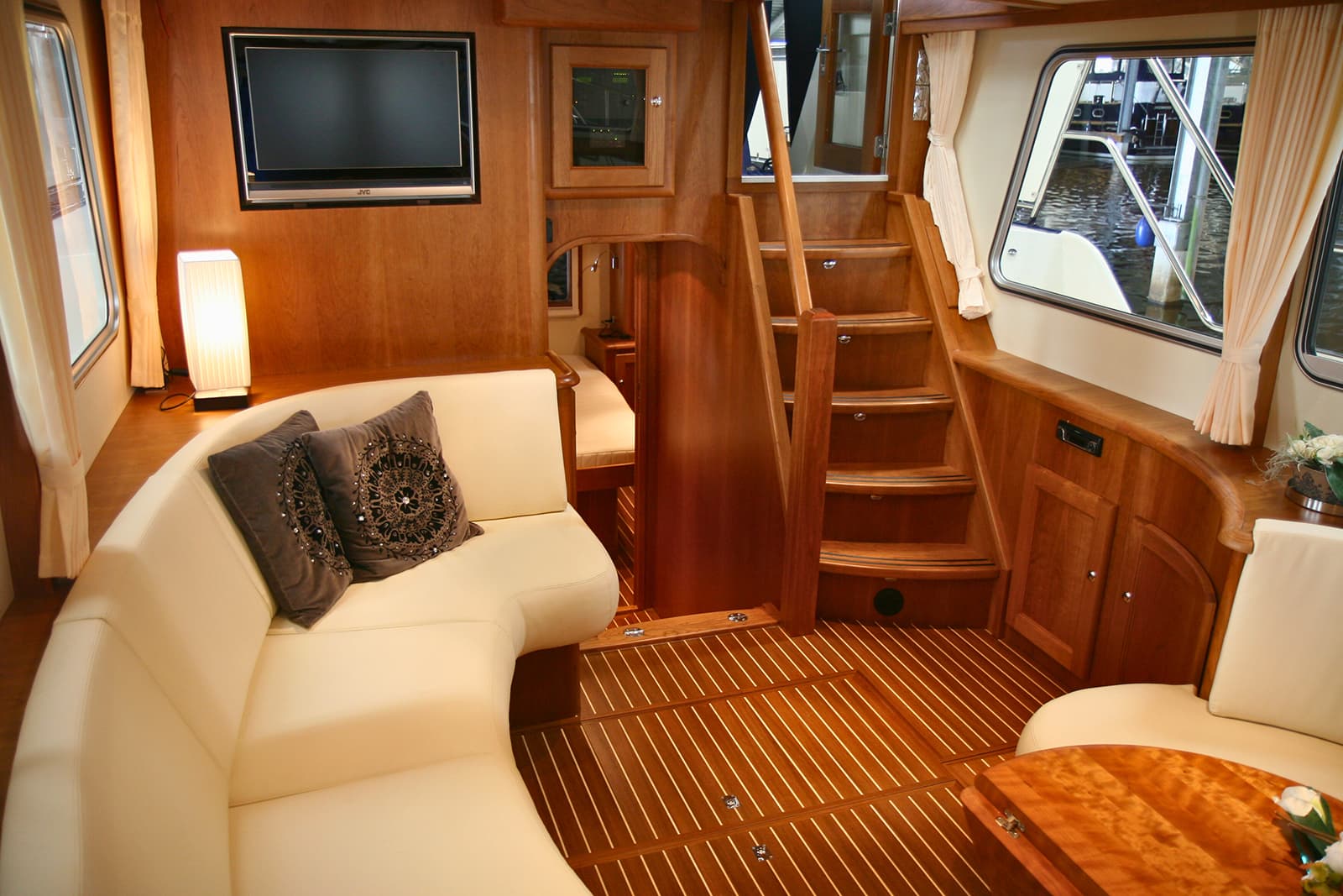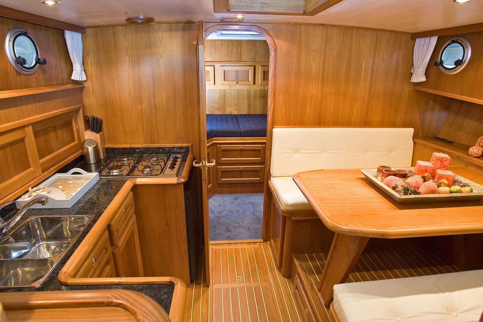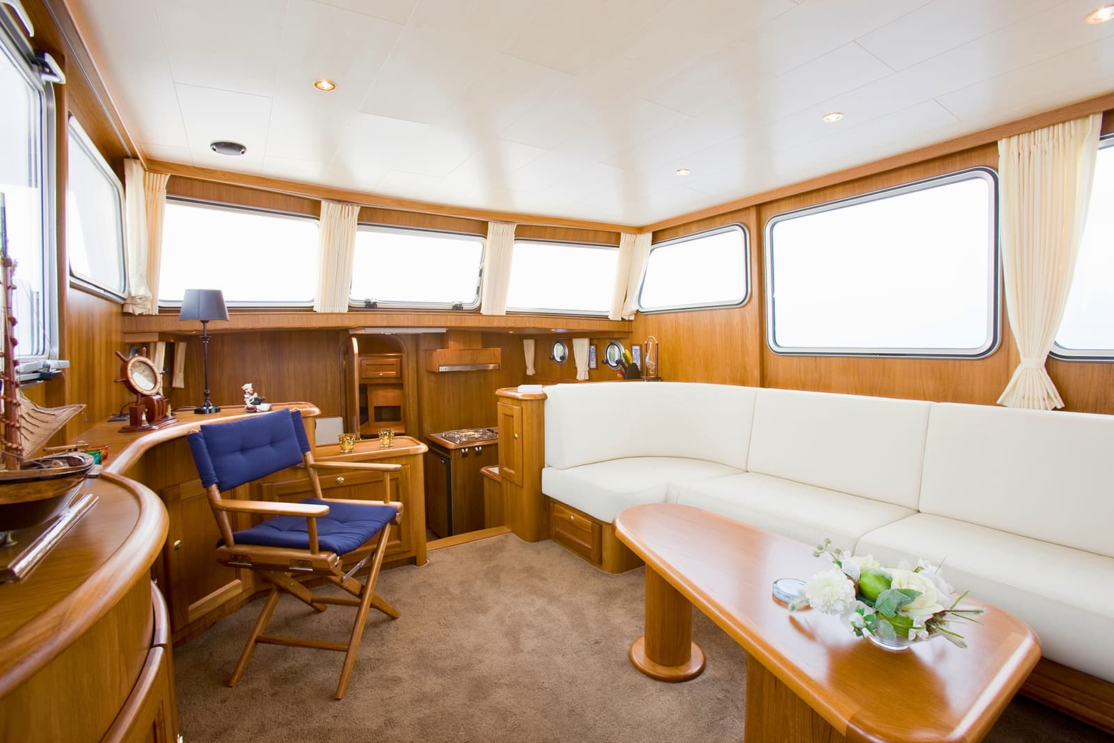 De brede gangboorden geven het gevoel dat u zich aan boord van een groter model dan de 430 AC bevindt. Het volledig overdekte achterdek biedt niet alleen extra verblijfsruimte, maar ook een panoramisch uitzicht dat elke bestemming een nieuwe dimensie geeft. Met afmetingen van 12,98 x 4,15 meter is er volop ruimte voor comfort en luxe, of u nu korte tochten maakt of langere reizen onderneemt. De Smelne Vlet 430 AC staat niet alleen garant voor stijl, maar ook voor geweldige zeewaardigheid. Door haar slimme ontwerp en unieke onderwaterschip voelt ze zich even thuis op rustige wateren als op uitdagender zee. Het interieur kan volledig op uw wensen en stijl worden afgestemd, zodat deze vlet naadloos aansluit bij uw persoonlijke voorkeuren en verwachtingen, ongeacht waar de reis u heen brengt.